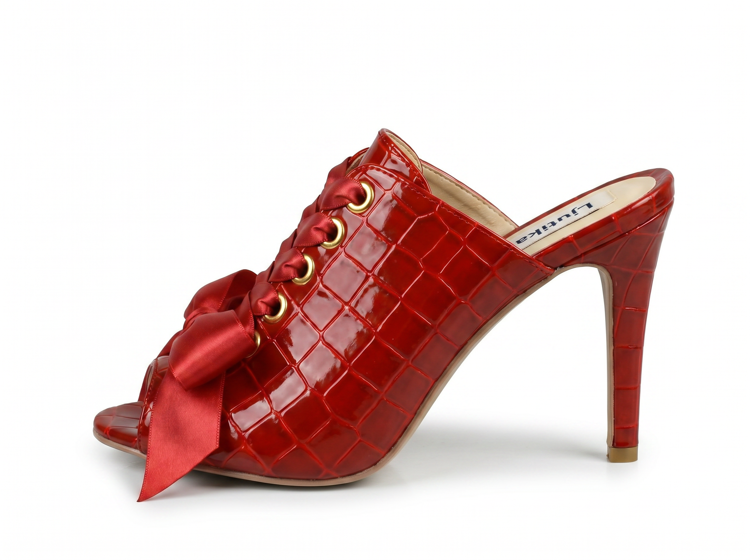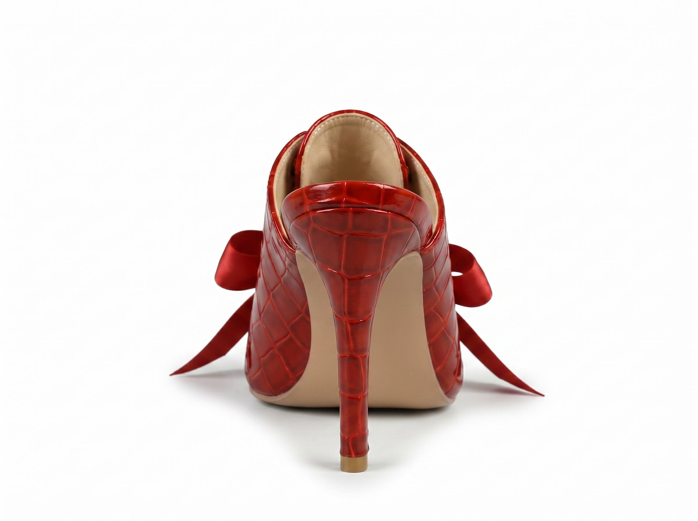 Make a powerful statement with the Ljutikova Scarlet Bow Croco Mules — a striking fusion of bold color, luxury texture, and refined craftsmanship. Crafted from premium Italian leather with an embossed croco finish, these heels radiate confidence, elegance, and modern femininity.